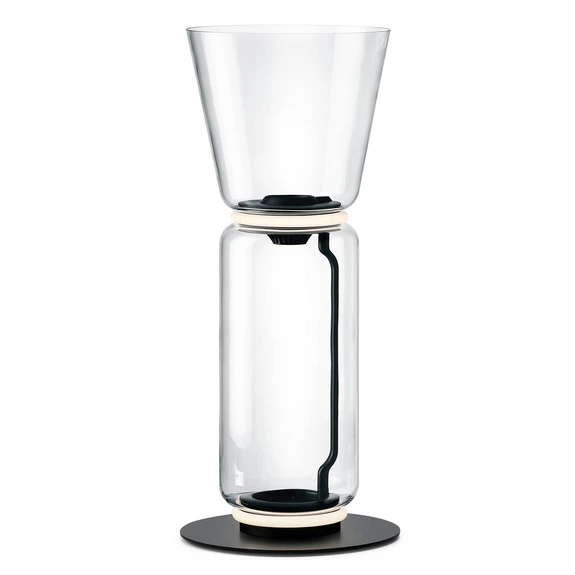 The Noctambule F1 Floor Lamp High Cylinder & Cone by Flos is an impressive floor lamp that combines elegance and functionality. This floor lamp consists of interconnected glass modules that reach a height of 2.17 metres, making it a striking element in any room. The cylindrical and hemispherical structure is made of mouth-blown crystal for a clear and sophisticated look. The base and rings are made of die-cast aluminium, while the inner lateral arms are made of hydroformed steel. The outer ring diffuser is created from optical opal silicone, ensuring an even and comfortable light distribution. With a 2-metre power cable and a pedal-operated panel dimmer, you can easily adjust the light intensity from 10% to 100%, allowing you to create the perfect atmosphere in your home. The wall-mounted power supply comes with interchangeable plugs, making installation simple and flexible..