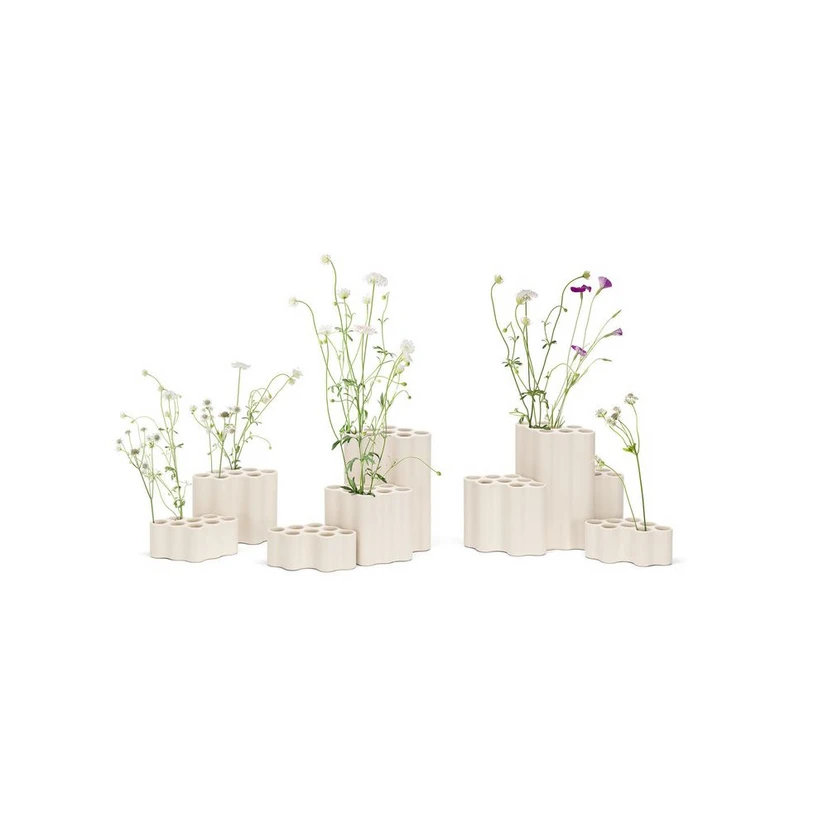 Nuage Céramique Medium White has a cloud-like design as is available in different sizes. The eight internal tubes allow you to arrange your flowers and stems into a stylish bouquet. The wavy design looks lovely in any décor whether you use the vase with or without flowers and on its own or in a cluster of differently sized vases.