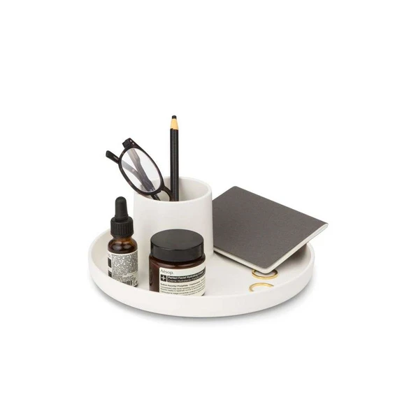 O-Tidy White from Vitra was designed by Michel Charlot, who is a bit of an expert in quirky and atypical elements for the home office. The small plastic circle is a storage product that holds a tray and a pencil holder—and with an O-Tidy, you can finally put the mug from your holiday to Rhodes, which has been holding your pens, pencils, and reading glasses all this time, back in the kitchen cupboard where it belongs.