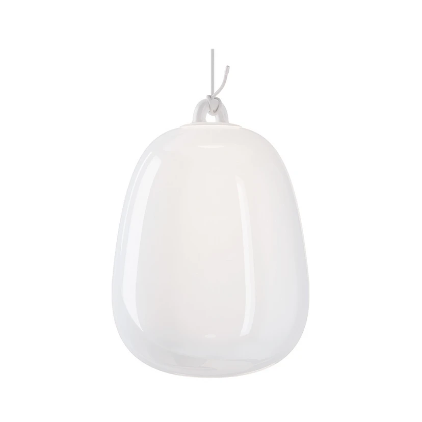 Oblò Pendant Large 3000K Silk White/White is a unique pendant light from Lodes that combines versatile lighting solutions with Paola Navone - OTTO Studio's creative design. Made of plastic and glass, this pendant light has a white colour that fits perfectly into any home. With a height of 24.3 cm and a diameter of 21.1 cm, Oblò is ideal for creating an elegant lighting experience above a coffee table or next to a bathroom cabinet. Its design is inspired by the maritime universe, where the floating shape of the Pyrex glass resembles a buoy floating in the air. The white fabric-covered cord cleverly hides the electrical installation, while the LED light is hidden in the hook for a clean and minimalist look. Whether you choose to hang it alone or in a group, Oblò adds a sophisticated touch to both private homes and public spaces..
