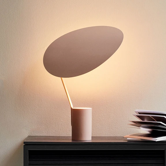 The Ombre Table Lamp Warm Beige is a unique and elegant that can add charm to any interior style. Ombre consists of a compact base and an adjustable lampshade, which contributes to the two most important things about lamps, according to the designer himself: shade and light. The synergy between these starts with the light source, which spreads a white light upwards from the base and directly into the shade. Ombre is inspired by the shape of a tree leaf, where the adjustable lampshade catches the light in its shape and then reflects a diffused, soft and pleasant light onto the surrounding surfaces. Both the base and shade are made from powder-coated steel in both a matte black and beige colour, each of which accentuates the lamp's unique aesthetic. You can place the table lamp anywhere in your home, with your bedside table, desk, windowsill or bookshelf being some of the most obvious locations.