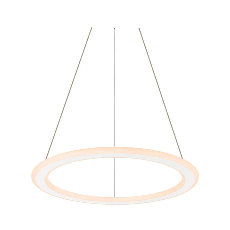One Flat Pendant Single 2700/3000K White from SLV is an elegant addition to your lighting. Made from white lacquered aluminium, this pendant light combines style and functionality. With a height of 2 cm, a diameter of 60 cm and a length of 180 cm, it fits perfectly into both private homes and commercial environments. The flat ring design emits a phase-dimmable light that can be adjusted in colour temperature between 2700K and 3000K via a CCT switch. This ensures a colour-neutral light with a high colour rendering (CRI >90) that creates a pleasant atmosphere. With an impressive lifetime of 50,000 hours, this lamp is both durable and energy efficient. Whether you want to upgrade your living room or add a modern touch to your office, this pendant light is the ideal choice.