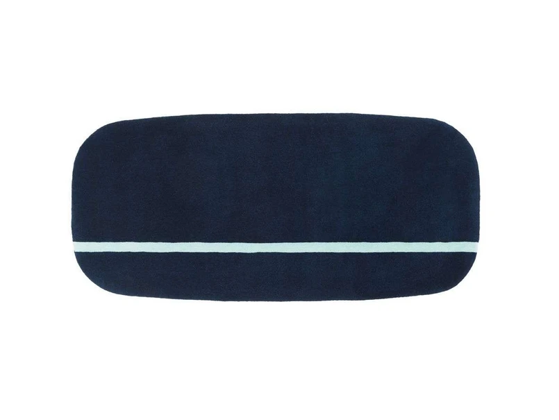 In addition to its purely practical qualities, the rug also comes in a sophisticated design. The solid-coloured surface is broken by a contrasting stripe that is deepened by 3 mm compared to the rest of the rug, creating a beautiful counterpoint in the overall expression and adding a personal edge that gives the design recognisable value.
