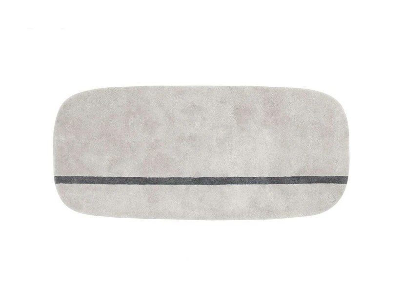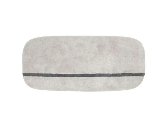 In addition to its purely practical qualities, the rug also comes in a sophisticated design. The solid-coloured surface is broken by a contrasting stripe that is deepened by 3 mm compared to the rest of the rug, creating a beautiful counterpoint in the overall expression and adding a personal edge that gives the design recognisable value.