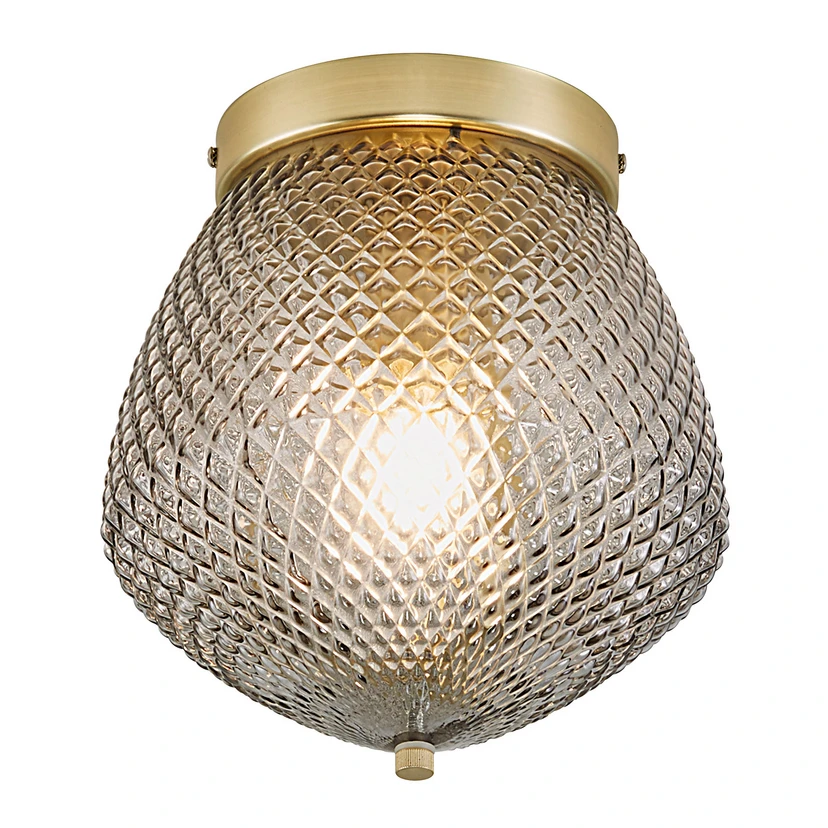 A particularly eye-catching feature of this lamp is its rich glass shade, which is adorned with a continuous diamond pattern. This not only gives the lamp an aesthetic touch, but also ensures that the light from the light source behind it does not dazzle. The glass also has a fascinating smoke-coloured surface that ensures a very soft and diffuse lighting, perfect for creating a moody atmosphere in the room. As the lamp is fitted with a standard socket, it can be equipped with a light bulb of your choice, and the range of suitable bulbs is wide.