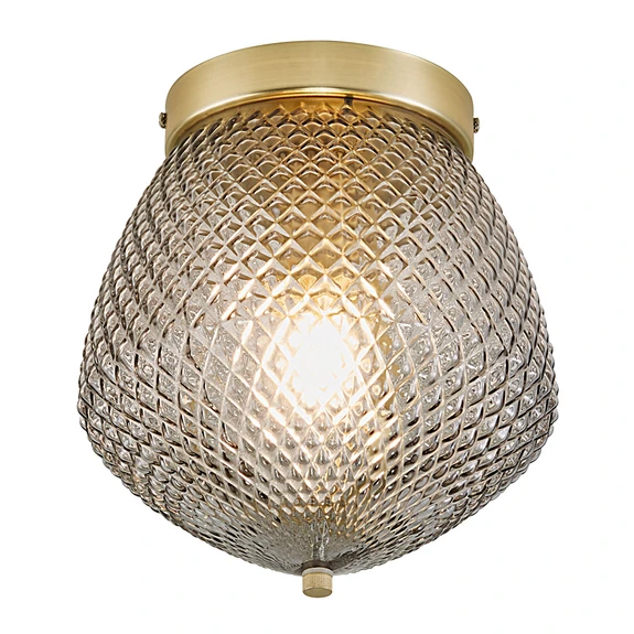 The Orbiform Ceiling Light Smoke is a beautiful and eye-catching lighting model with a unique character. With its voluminous design, shiny brass frame and patterned glass shade, the lamp evokes associations with classic oriental design, making it particularly suitable for vintage-inspired interiors and other styles that cultivate originality and detail.