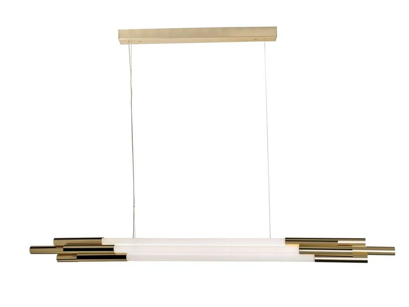Org Pendant Horizontal 1300 Gold is a lovely eye-catching lamp inspired by the worlds of sci-fi and astronomy. It has a simple look, composed of a range of glass tubes framed by anodised aluminium and assembled to form an asymmetrical cluster of light. The lamp is surprisingly both classic and modern whilst its pairing of glass and gold contributes an element of elegance.