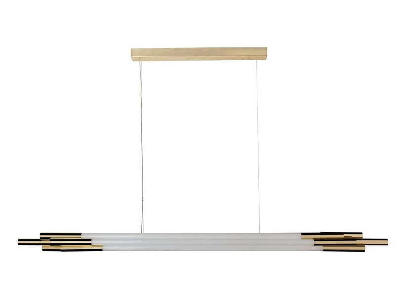 Org Pendant Horizontal 1600 Gold is a lovely eye-catching lamp inspired by the worlds of sci-fi and astronomy. It has a simple look, composed of a range of glass tubes framed by anodised aluminium and assembled to form an asymmetrical cluster of light. The lamp is surprisingly both classic and modern whilst its pairing of glass and gold contributes an element of elegance.