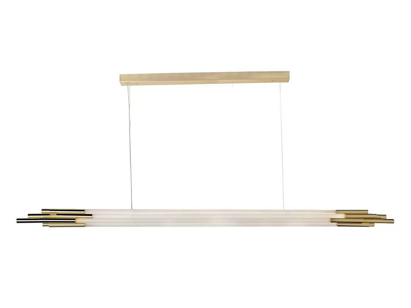 Org Pendant Horizontal 2000 Gold is a lovely eye-catching lamp inspired by the worlds of sci-fi and astronomy. It has a simple look, composed of a range of glass tubes framed by anodised aluminium and assembled to form an asymmetrical cluster of light. The lamp is surprisingly both classic and modern whilst its pairing of glass and gold contributes an element of elegance.