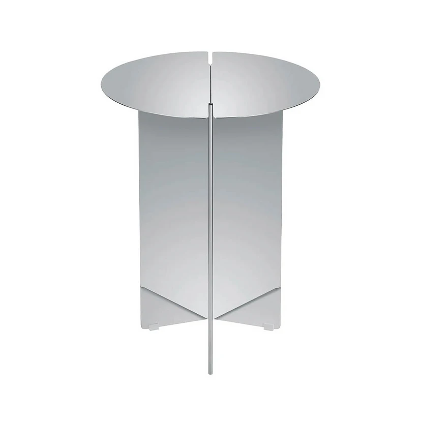 The Oru Side Table S Polished Stainless Steel from Bloumus is an elegant and functional piece of furniture that will grace any home. Inspired by the traditional Japanese art of origami, German designer Robin Scholtysik has created a sculptural and filigree side table line that is now part of a complete furniture collection. This metal side table has a slim and elevated shape that makes it ideal for displaying decorative objects or as a stylish shelf in the hallway or living room.
