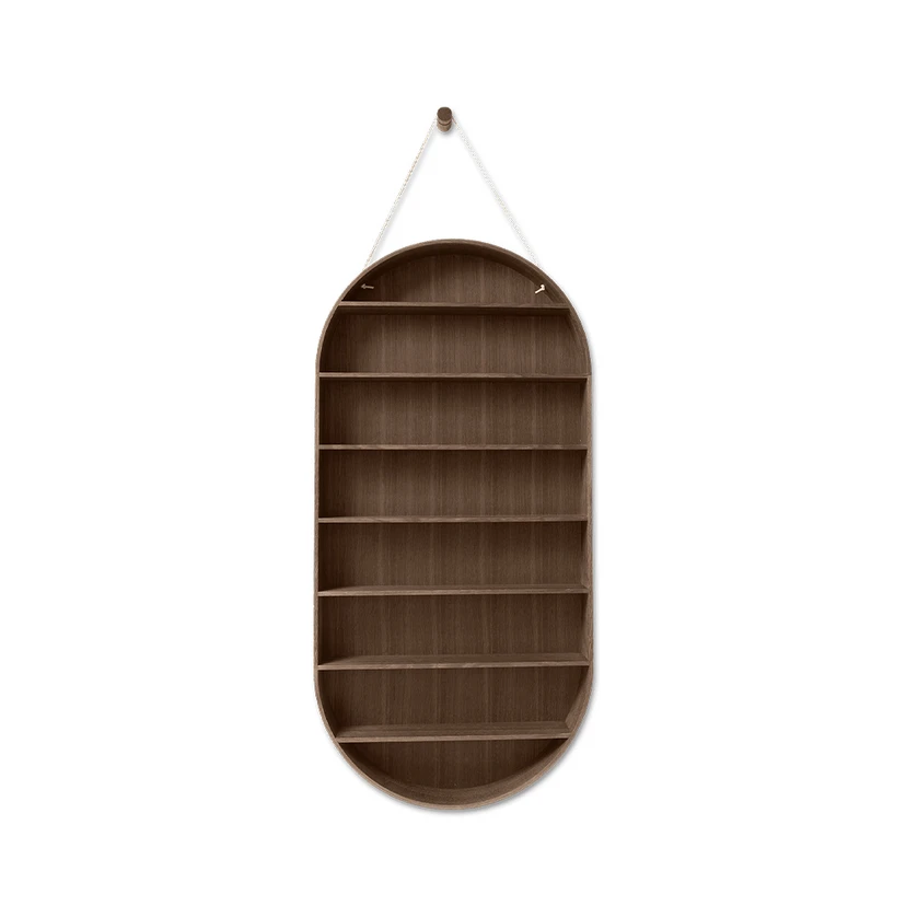 The Oval Dorm Shelf Smoked Oak from Ferm Living is the perfect addition to your home if you are looking for an elegant and functional storage solution. Made from solid oak and oak veneer, this shelf combines a beautiful oval shape with minimalist lines to create a modern and stylish look. The smoked oak colour adds a warm and sophisticated tone to any room. The shelf is versatile and gives you ample space to display your favourite objects, whether it's decorative items like plants and books or personal memories and unique finds. A decorative leather cord with an oak hook adds a touch of artisanal finesse, even if it's just for decoration. Keep in mind that the shelf can support up to 15kg when properly mounted and it's important to secure it with two screws to ensure stability.