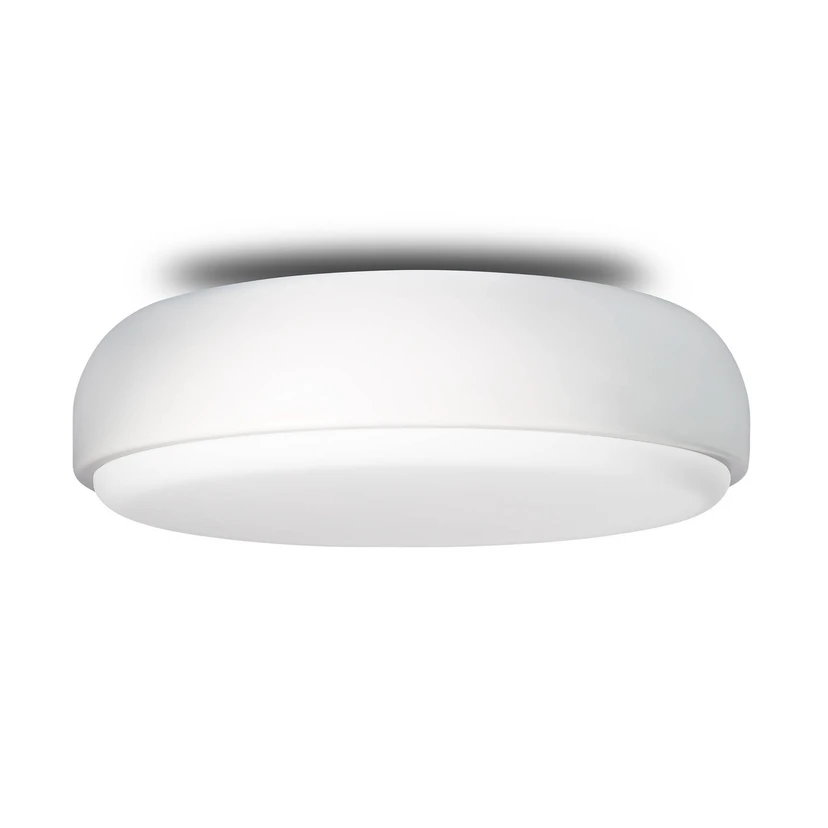 Over Me Ceiling Lamp 50 White is a simple ceiling/wall lamp consisting of a smooth metal frame and an illuminated glass disc. The lamp provides a beautifully diffuse light and thanks to its minimalist look and flexibility, Over Me is a natural supplement to modern interior design.
