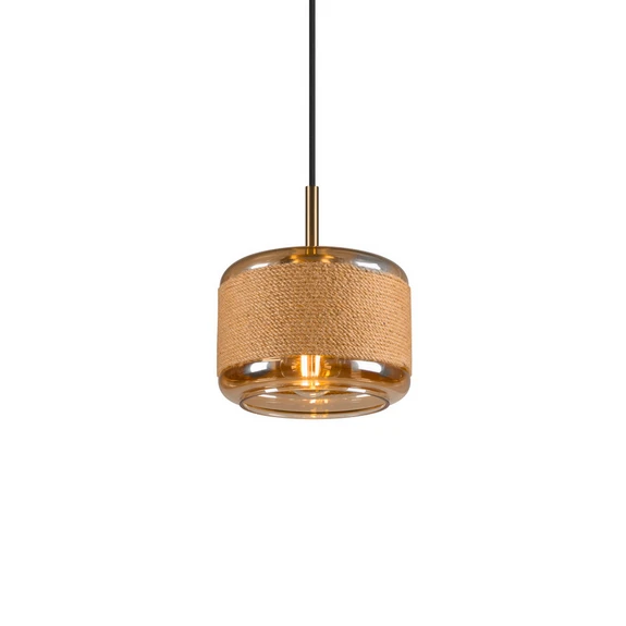 Pantilo Rope 19 Pendant Light Gold has an accomplished design concept that both beautifies the interior and enriches the room with pleasant lighting and an atmospheric glow. The lamp is the result of a fruitful collaboration between designer Susanne Uerlings and German lighting manufacturer SLV. It has a captivating visual appearance with a rounded lampshade in tinted glass and a surface pattern formed by tightly bound hemp rope that forms a beautiful design highlight. The matt surface of the rope against the shiny glass creates an interesting contrast while remaining consistent in its colour and shape scheme, creating a balanced and harmonious overall impression.