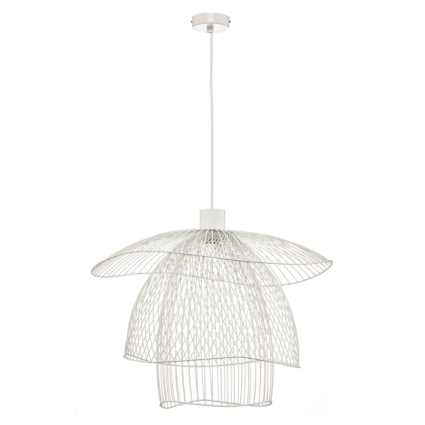 Papillon Pendant was created by the French designer Elise Fouin. Fouin is famous for her focus on recycled materials and playful approach to materials. This is plain to see in the Papillon Pendant, which is made of metal yet features the soft and delicate shapes that give the lamp an unmistakeable organic touch.