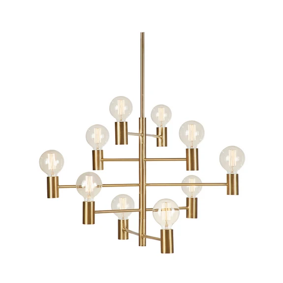 Paris Chandelier Dark Brass from Markslöjd is an impressive chandelier that adds a touch of elegance to your home. With its 10 light sources, Paris creates a fantastic light distribution that illuminates the room without dominating it. The dark brass finish gives the chandelier a sophisticated and modern aesthetic, while the brushed steel arms add a unique texture that emphasises the trendy design. The different lengths and levels of the arms of the chandelier make it an eye-catching element in any interior. Made of durable iron, Paris is both sturdy and stylish. Ideal for hanging above the dining table or in the living room, it can be adjusted in height from 96 cm to 186 cm to perfectly fit your interior. With space for 10 E27 light bulbs, you can choose the lighting that best suits your needs. Light bulbs are not included, so you have the freedom to choose between traditional or LED light bulbs up to 60 watts.