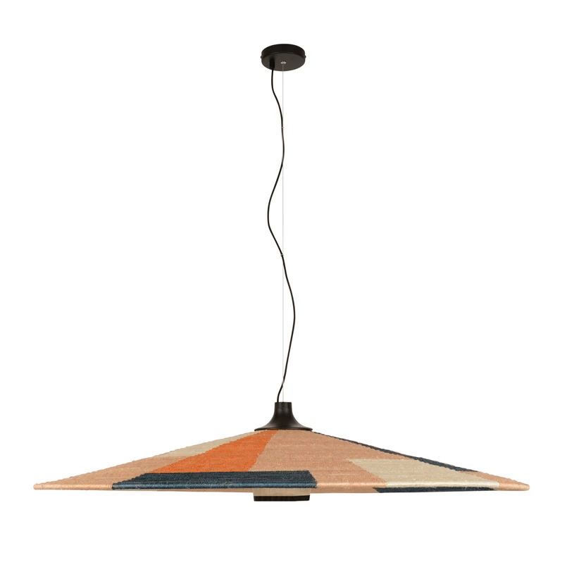Parrot is a colourful lamp with a beautiful natural design that makes it a must-have in any relaxed and bohemian-inspired interior. The lampshade is made of rattan and abacá, which are hand-woven in a dense pattern and have a rough surface that adds a tactile element to the lamp's design and emphasises its beautiful aesthetics. As the name suggests, the lamp is inspired by the colourful plumage and exuberance of the parrot. The colours interact beautifully in a cubist pattern that gives the surface a beautiful play of colour without appearing kitschy. The lampshade is relatively wide so it does not impede light emission.