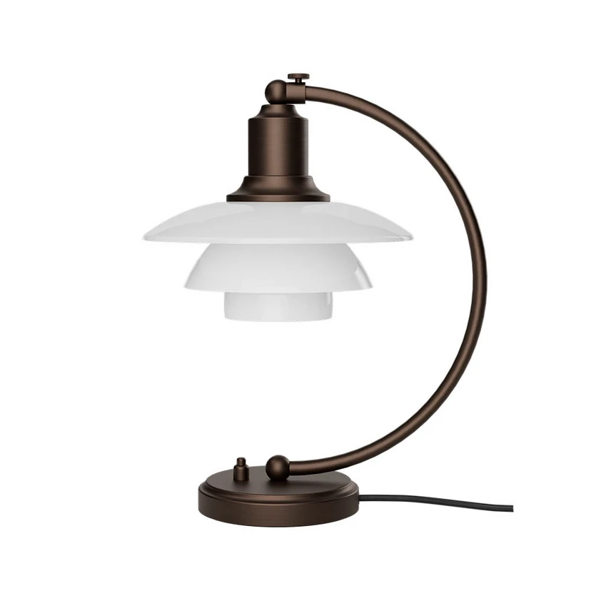 The PH 2/2 Luna Table Lamp Aged Brass/Opal Glass from Louis Poulsen is an elegant table lamp that combines timeless design with functionality. This lamp, which belongs to the table lamp category, is created with Poul Henningsen's iconic three-shade system. The lampshades are made of mouth-blown opal white glass, which is glossy on the outside and sandblasted matt on the underside, ensuring a perfect downward light and a soft, diffused light that creates a pleasant atmosphere in the room. The lamp's burnished brass finish adds a touch of luxury and fits perfectly into both modern and classic interiors. Measuring 25.5 cm in length, 20.0 cm in width and 32.4 cm in height, this lamp is ideal for placement on desks, bedside tables or in living rooms where it can serve as both a practical light source and a decorative object. Experience the perfect combination of design and functionality with this beautiful lamp.