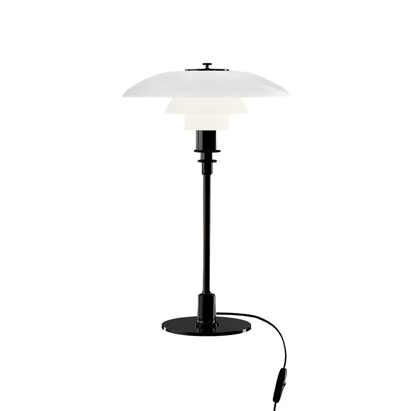 The PH 3/2 lamp was designed with a reflective multi-shade system based on the of a logarithmic spiral - the focal point of the light source is located in the centre of the spiral, producing diffuse and glare-free light. The PH 3/2 table’s mouth-blown three-layer opal glass is glossy on the outside and sandblasted matte on the inside. It emits a soft and diffuse downward facing light.