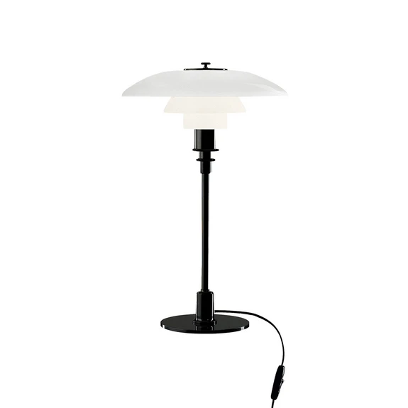 The PH 3/2 table in metallic black is a member of the 3-shade family that now consists of 18 lamps, three of which are designed for outdoor use. Poul Henningsen created the 3-shade system back in 1925-1926, when in cooperation with Louis Poulsen he designed the first lamps for an exhibition in Paris. Throughout his life, PH sought to create glare-free light that could be directed where it was needed and created soft shadows.