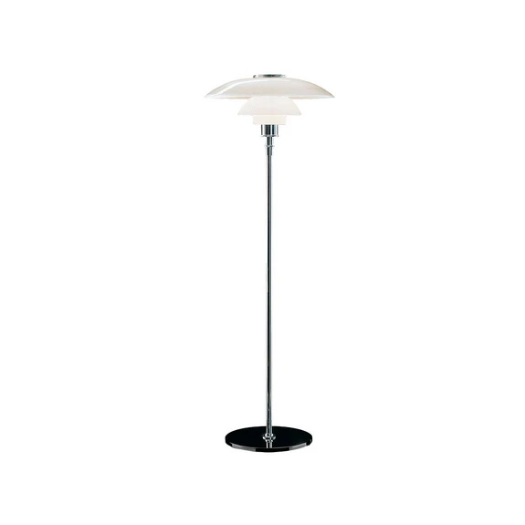 The PH 4½/3½ floor is a member of the 3-shade family that now consists of 18 lamps, three of which are designed for outdoor use. Poul Henningsen created the 3-shade system back in 1925-1926, when in cooperation with Louis Poulsen he designed the first lamps for an exhibition in Paris. Throughout his life, PH sought to create glare-free light that could be directed where it was needed and created soft shadows.