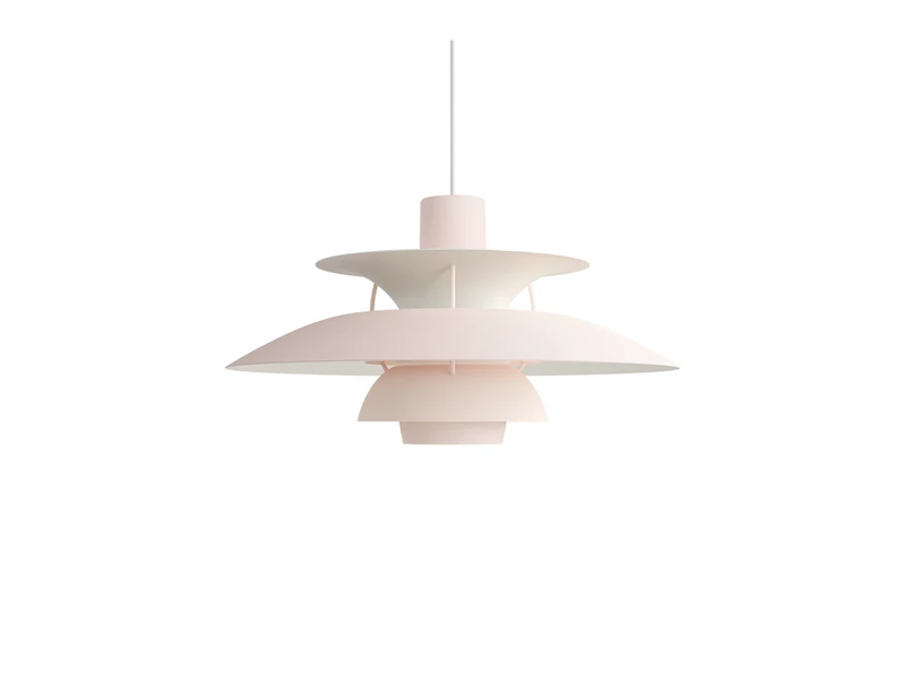 Discover the iconic PH 5 Pendant Monochrome Pale Blush, part of the PH 5 Pendant Monochrome series from Louis Poulsen, now available in four new unique colours including Pale Pewter, Pale Blush, Burgundy and Dusty Indigo. Designed by Poul Henningsen in 1958, the PH 5 is created to deliver 100% glare-free light. It uses a reflective three-shade system that directs most of the light downwards while illuminating the lamp itself. This makes the PH 5 perfect for dining room lighting, where it creates a soft and cosy atmosphere.