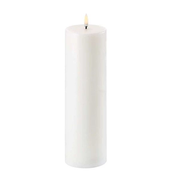 The 7.8 x 25 cm LED Nordic White 7.8 x 25 cm block candle has a unique 3D flame that resembles the flame of a traditional candle. Thanks to LED technology, Uyuni Lighting has created a series of LED candles that resemble a living flame that stands and flickers gently. The flame has no physical movement, so you don't have to use electricity to keep it moving.