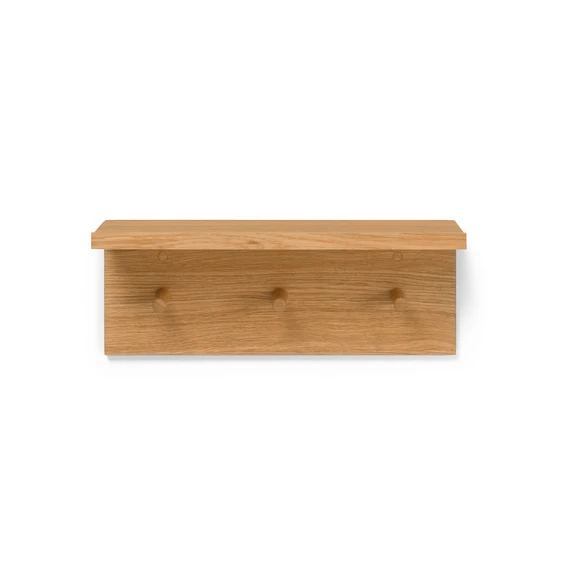 The Place Rack is made from oak veneer with an MDF core, while the hooks are made from solid oak. It comes with a series of hooks from which you can hang whatever you like - and above the hooks is a surface where you can display your favourite things.