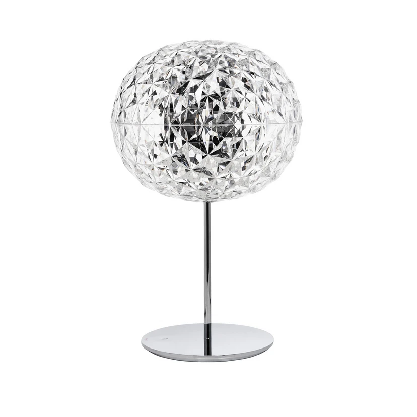 The unique thing about the Planet Table Lamp Large in Crystal is the light, elliptical shape of the diffuser, not to mention its multifaceted design that reflects the light at multiple points to create an amazing mosaic of light, further amplified by the transparent, moulded thermoplastic.