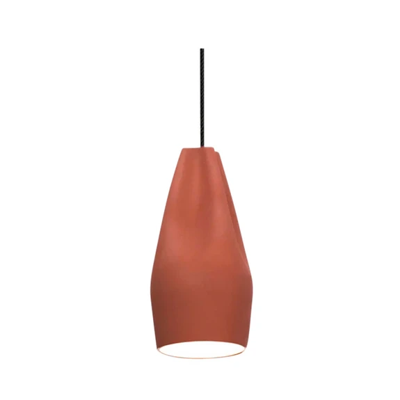 The Pleat Box 13 Pendant Light E27 Terracotta/White from Marset is a unique pendant light that combines modern design with traditional craftsmanship. Made from metal and ceramic, the red and white colour combination adds a stylish touch to any room. With a height of 26 cm and a diameter of 11.5 cm, it fits perfectly above dining tables, in living rooms or as part of a decorative lighting installation. The ceramics used are both malleable and durable, making each lamp in the collection unique. The inside of the lamp is available with a shiny white enamel that reflects the light beautifully or a 24-carat gold coating that creates a warm and inviting atmosphere. On the outside, you can choose from classic colours such as white, black, terracotta and grey, or the new shades of dark green and ochre. With the option of integrated LED technology, you get an energy-efficient solution that prevents glare..