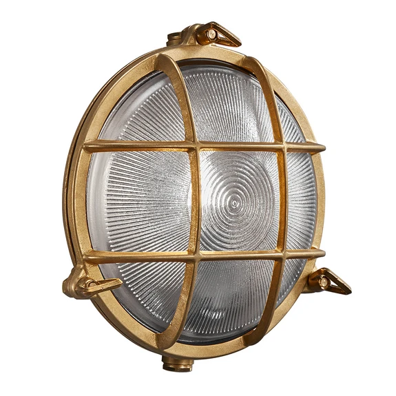 The Polperro Wall Lamp Brass could almost resemble a porthole on a ship. With its raw, maritime appearance, the lamp evokes memories of roaring seas and the harsh Nordic weather. The distinctive design makes this model a highly decorative wall lamp that enriches the surroundings with a cosy light. The lamp is ideal for rustic surroundings, where it adds personality and edge to the decor.