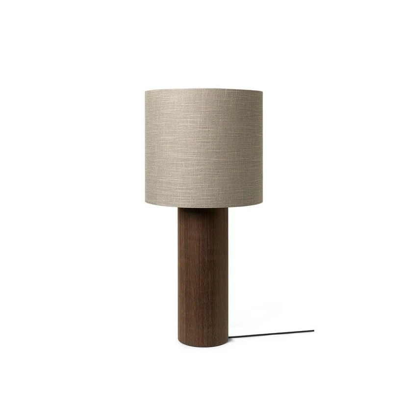 The sharp cylindrical shape is backed up by a choice of material that exudes homeliness, nature, and warmth. The lovely wood surface creates an exciting contrast that breaks with the fixed design of the base. The cylindrical shape continues through the lampshade, creating a stunning balance overall.