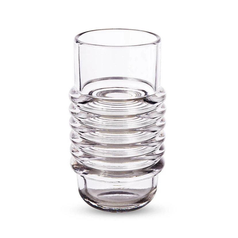 The Press Vase Large Clear - Tom Dixon is an impressive piece of homeware that will add elegance to your home. Made from clear glass, this vase from Tom Dixon is designed to catch and refract light, creating mesmerising shadows in the room. With a height of 31.0 cm and a diameter of 17.5 cm, this vase is both eye-catching and functional. It is created by moulding large amounts of molten glass into iron moulds, resulting in a heavy and robust construction. The distinctive grooves in the glass create a unique texture that emphasises the sculptural silhouette of the vase. This clear glass vase is perfect for displaying your favourite flowers or as a standalone piece of art in your home decor. Whether placed in the living room, on the dining table or in the hallway, it will add a touch of modern style and sophistication to any space.