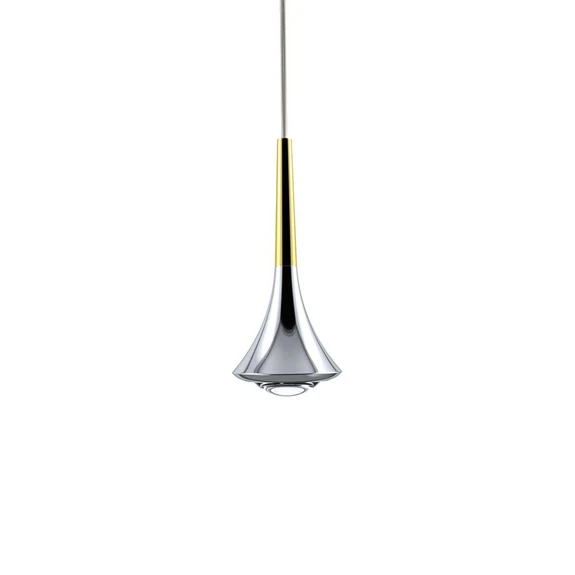 Rain Pendant Light 2700K Gold from Lodes is an elegant and minimalist pendant light inspired by the light raindrops of spring. Its curved, conical shape hangs from the ceiling like a drop caught in time, and the slender metal suspension supports a powerful LED light source that provides a warm and cosy 2700K light. With a colour rendering index (CRI) of 90, Rain reproduces natural colours without distortion, ensuring it is not only beautiful but also functional.