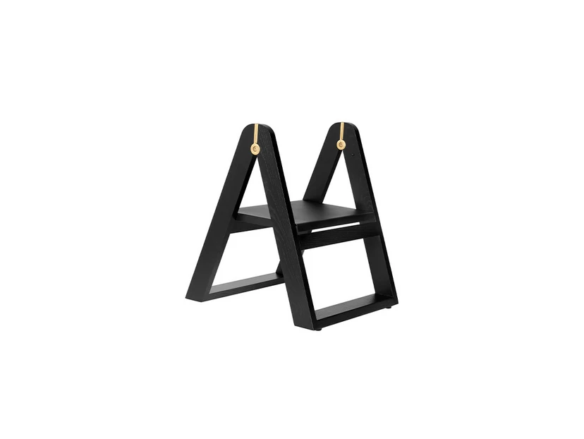 The Reech stool is ideal for use in the kitchen to reach high shelves, in the bedroom as a decorative item, or to help older children reach working height. The thoughtful design includes a small round push button that holds the top rung in place when the ladder is folded, as well as a beautiful brass closure that adds an exclusive look. The steel rungs are spray-painted for extra robustness.
