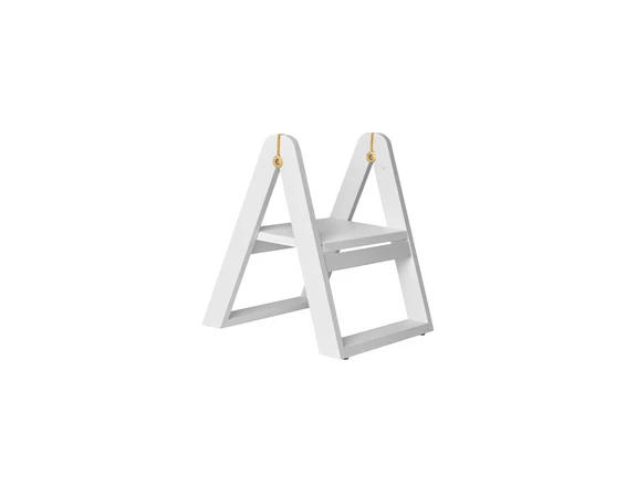 The design is inspired by the Nordic lifestyle and exudes both functionality and aesthetics. The small round push button ensures that the step is held firmly in place when the stool is folded and the beautiful brass closure adds an exclusive touch. The steel steps are spray-painted for extra robustness. The Reech stool is also space-saving and comes with a bracket so it can be hung on the wall or hidden away in the cupboard, creating the illusion of floating on the wall.