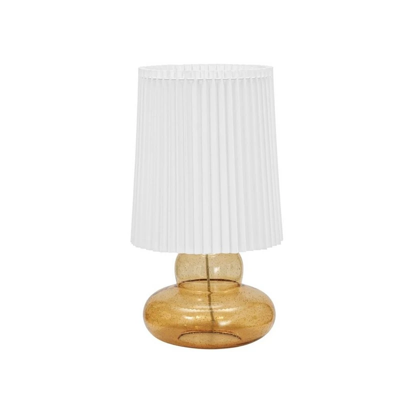 The Ribe Table Lamp Amber is an elegant and aesthetic showpiece from House Doctor that beautifully encapsulates their unique design DNA. Here they have created a simple design in two wonderfully beautiful colours that add charm and warmth as well as edge and character to the interior design, depending on which colour you want in your home. The table lamps consist of a unique glass base that comes with the finest little air bubbles and a pleated lampshade in white fabric that provides soft, comfortable, and glare-free lighting in the room. You can place this table lamp anywhere in your home, adding both functional and decorative value to your interior design.