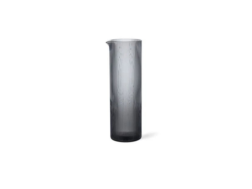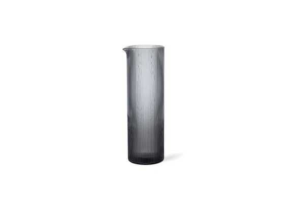 The Ripple Water Jug Smoked Grey from Ferm Living is an elegant and functional addition to your home. Made from mouth-blown glass, this water jug exudes the timeless beauty that characterises the popular Ripple series. The grey hue adds a sophisticated touch that fits into any decor. With a capacity of 112 cl, this jug is perfect for serving all kinds of drinks, whether for everyday use or special occasions. The precise spout ensures a controlled pour, making it easy to serve without spillage. The Ripple Water Jug is not only a practical tool, but also a stylish element on your table. It is dishwasher safe, making cleaning a breeze. Make your next gathering even more special with this beautiful jug from Ferm Living.