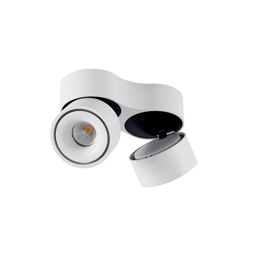 Rotari 2 Spotlight 2x8.9W White is a practical double spotlight that illuminates interiors to their best advantage. With its simple design, the light is suitable for private, public and commercial spaces – in short, anywhere where an effective spotlight is needed to accentuate specific areas. The light has two lampshades in a classic cylindrical shape. The lampshades sit on a bracket on the ceiling that mimics their shape and is curved. From here, the lampshades can be tilted downwards at a 90-degree angle. In addition, they can be rotated up to 350 degrees, allowing you to adjust the direction of the light very precisely. This is a great advantage with this model, as it has a beam angle of 34 degrees and thus provides a very focused light. The light comes from the lamp's LEDs, which are installed behind each lampshade and emit an efficient, warm white light.