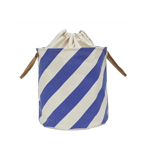 The Sakki Storage Basket Optic Blue from OYOY Living Design is the perfect solution for those who want to combine style and functionality in their home. This storage basket, also known as a storage solution, is made from a durable blend of 75% polyester, 17% cotton, 4% polyamide and 4% viscose, with a PE coating that ensures long-term use. With its playful striped design in blue and white, the basket adds a breath of fresh air to any room. The handy closable drawstring makes it easy to organise and transport everything from duvets to other items, making it an indispensable part of your daily storage. With a diameter of 52 cm and a height of 54 cm, it fits perfectly in both large and small spaces. Make your home more organised and stylish with this versatile storage basket.