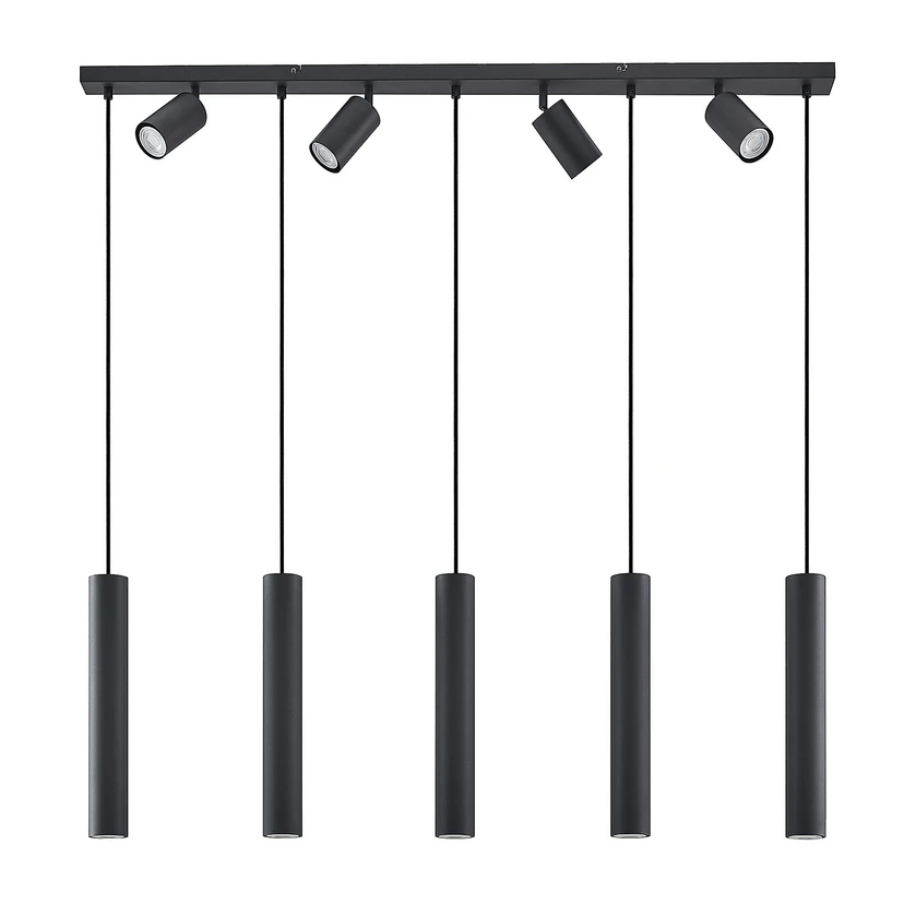 This pendant light is the ideal lamp for those who want efficient lighting in larger rooms. With its many combined light sources, the lamp offers both direct downlight for efficient illumination of the dining table or other longer surfaces, ambient lighting throughout the room and spotlights to emphasise different parts of the interior. Both spotlights and pendant lights have a cylindrical shape with a narrow light output at the end that provides a relatively focussed light. However, the impressive size of the lamp and the large number of light sources create a wide-ranging illumination. The lamp's ceiling spots can be swivelled to adjust their direction and change the overall light pattern. With its many light sources and efficient lighting, the Sanad Pendant is the ideal lamp for larger spaces, or possibly for exhibitions or shops where the lamp is both eye-catching and emphasises the interior.
