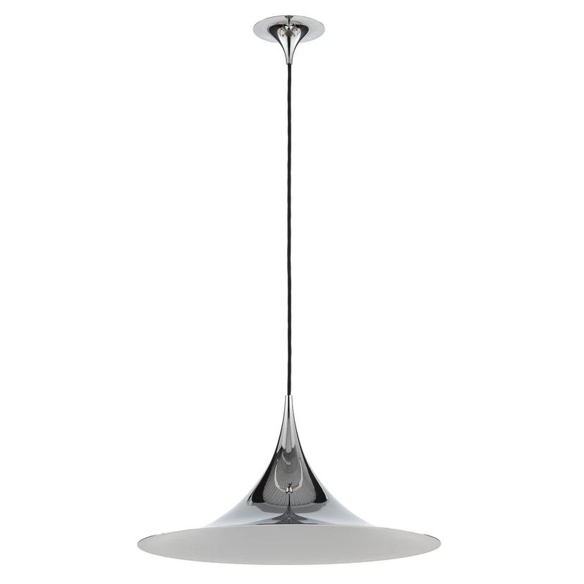 The Semi pendant in Ø47 Chrome is a distinctive lamp that consists of two quarter-circles with their backs against each other. The characteristically arched and enamelled metal shade creates a diffuse light that is ideal for use over your dining table or kitchen table, where you need extra work light. The unique and timeless appearance of the Semi pendant – not to mention its range of colours and sizes – makes it versatile and well-suited for private and public spaces alike.