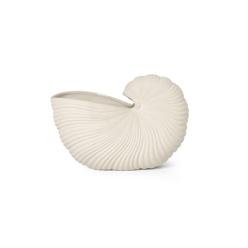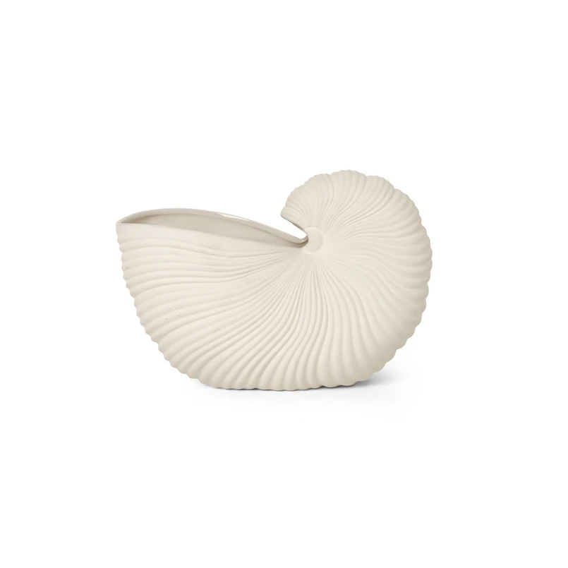 The natural Fibonacci shapes create a shell, which you can leave out as a decorative object or use as the base for a lovely bouquet of flowers. Shell Pot is made of stoneware with an unglazed exterior, so you can feel the stone structure, and a glazed interior, so you can pour water into the pot.