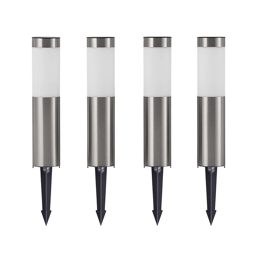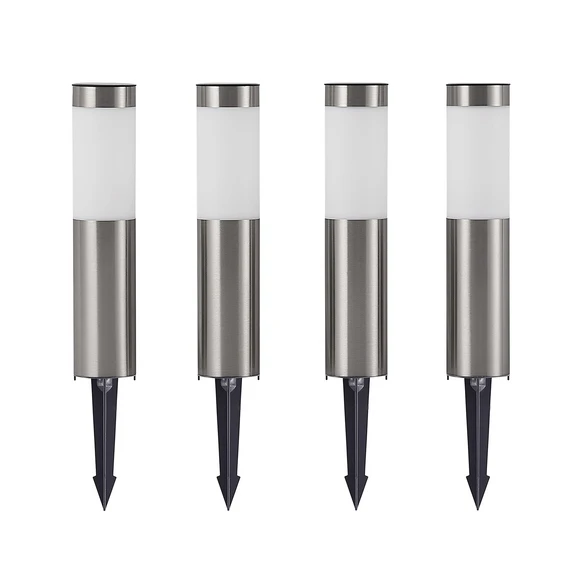 Sirita Solar Cell Lamp 4 pcs. Silver presents itself in a versatile and flexible design that offers a wealth of possibilities. The lamp comes in a smart set of four, each with a handy ground spike for easy placement and retrieval, and a pearl white cover that diffuses the light. The cover runs around the length of the fixture for even light distribution to all sides. The light has a cool, shimmering daylight white colour tone that can be seen from a distance, making it a good orientation light.