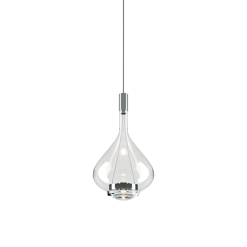 The Sky-Fall SO1 pendant in clear crystal glass is a unique and exclusive design from Studio Italia. The designer has found inspiration in an old-fashioned carafe of wine. The lamp itself is equipped with modern LED technology, namely 2x10W LED light sources where one lights the body of the lamp for illumination of the room and the other is fixed inside the lamp and provides downward illumination.