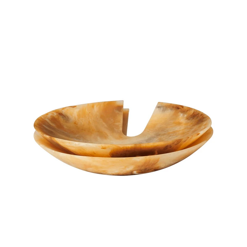 Ferm Living has created these bowls with a unique marble effect that makes each bowl unique. The soft, translucent finish varies subtly, giving an exclusive look. The bowls are designed without handles for easy handling, while the crescent-shaped bowl with cut-out details ensures efficient serving. Please note that the bowls should be handled with care as the material can break on hard impacts.