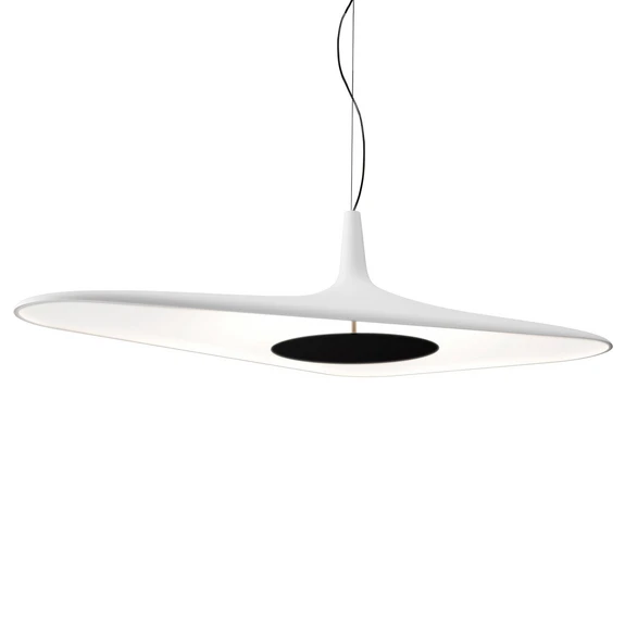 The pendant has an organic and elegant shape and is equipped with an energy-efficient LED light source hidden inside a disc that generates a homogeneous, indirect light.