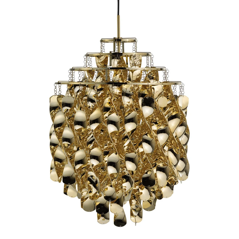 The pendant is adorned with spirals that hang in orderly calm. This not only creates a pleasantly diffuse light, but also fills the room with a sense of restrained energy distinctive to the artwork that is the Spiral SP01 in Gold.