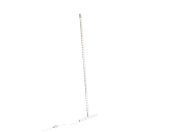 The Squiggle F1 Floor lamp 3000K Matt White from Rotaliana is a unique floor lamp that brings artistic flair into your home. Inspired by Lucio Fontana's Neon structure from the 9th Milan Triennale, this lamp presents a suspended, tubular exoskeleton that hides an LED strip of up to 6 metres. The white metal structure is perforated with a series of irregular, hexagonal holes that create fascinating geometric shapes such as broken curves, infinity symbols and concentric rings of different sizes. With a height of 193 cm and a width of 43 cm, this lamp is both a functional light source and a work of art in itself. The matt white finish makes it versatile and easy to integrate into any decor, while the durable metal ensures long-lasting quality. Perfect for creating atmosphere in the living room or as an eye-catching element in the entrance hall..