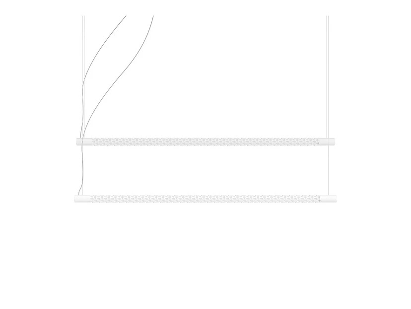 Squiggle H10 Pendant 2700K Matt White is a unique and stylish lighting solution from Rotaliana that will add an artistic touch to your home. Made from durable metal and presented in an elegant white colour, this pendant light is inspired by Lucio Fontana's iconic Neon structure from the 9th Milan Triennale. With its innovative design, Squiggle conceals an LED strip that can stretch up to 6 metres, providing an impressive lighting experience. The irregular, hexagonal holes in the tubular structure create fascinating geometric shapes reminiscent of broken curves, the infinity symbol or concentric rings of different sizes. This pendant light is perfect for creating a modern and dynamic atmosphere in any room, whether it's over the dining table, in the living room or in a hallway. Add a touch of Italian design and functionality to your home with this remarkable lamp.