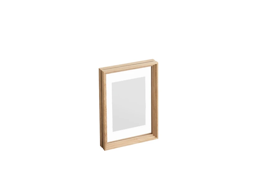 Standing Frame A5 Oak from Moebe is the perfect accessory to display your favourite photos, flowers or prints in an elegant and minimalist way. Danish design at its best. Created with simplicity in mind, this Danish-designed frame consists of two pieces of acrylic glass, four sides and an elastic band, giving you the freedom to create your own artistic display. You can easily hang it on the wall or place it on a shelf or table.